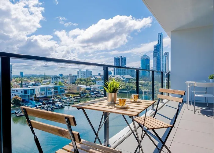 The spacious 94 m² Water View Oasis 2Br And Pool Apartment Gold Coast is in the centre of Gold Coast, only 550 metres from the SkyPoint Observation Deck. Featuring an outdoor swimming pool and a fitness centre, the 2-bedroom apartment is situated just moments from the Pink Poodle Sign.
